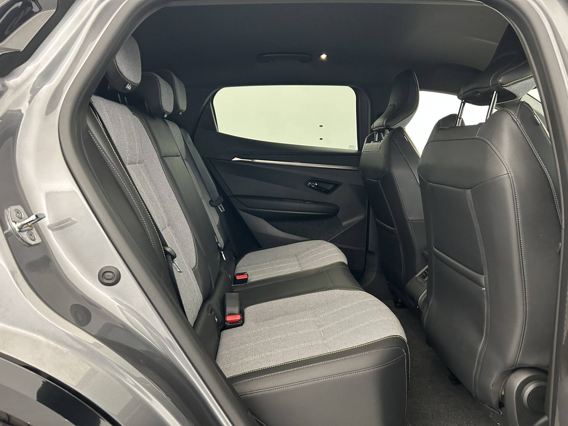 - Sellerie tissu recyclé gris chiné/textile enduit grainé recyclé noir titane/surpiqûres jaunes